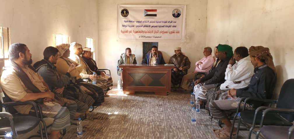 انتقالي الروضة ينظم لقاءً تشاوريًا لمسؤولي الشؤون الاجتماعية والجماهيريه باللجان المحلية بمراكز المديرية نظمت الهيئة التتفيذية للقيادة المحلية للمجلس الانتقالي الجنوبي في مديرية الروضة بمحافظة شبوة، اليوم...