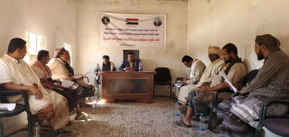 انتقالي الروضة ينظم لقاءً تشاوريًا لمسؤولي الشؤون التنظيمية باللجان المحلية بمراكز المديرية نظمت الهيئة التنفيذية للقيادة المحلية للمجلس الانتقالي الجنوبي في مديرية الروضة بمحافظة شبوة، اليوم...