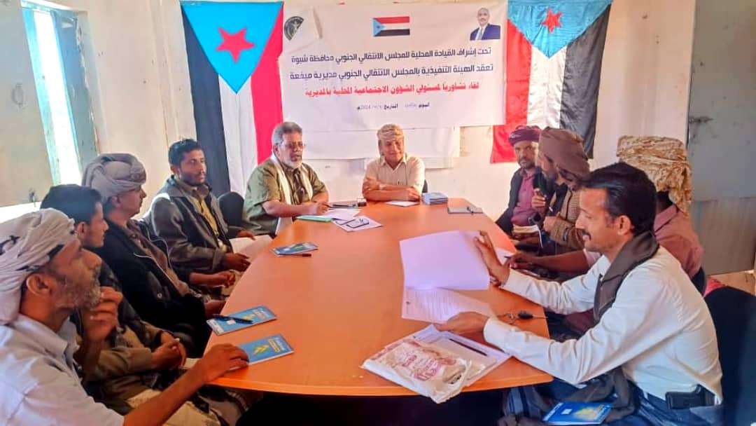 انتقالي ميفعة ينظم لقاءً تشاوريا لمسؤولي الشؤون الاجتماعية والجماهيرية للجان المحلية بمراكز المديرية نظمت الهيئة التنفيذية للقيادة المحلية للمجلس الانتقالي الجنوبي في مديرية ميفعة بمحافظة شبوة، اليوم ا...