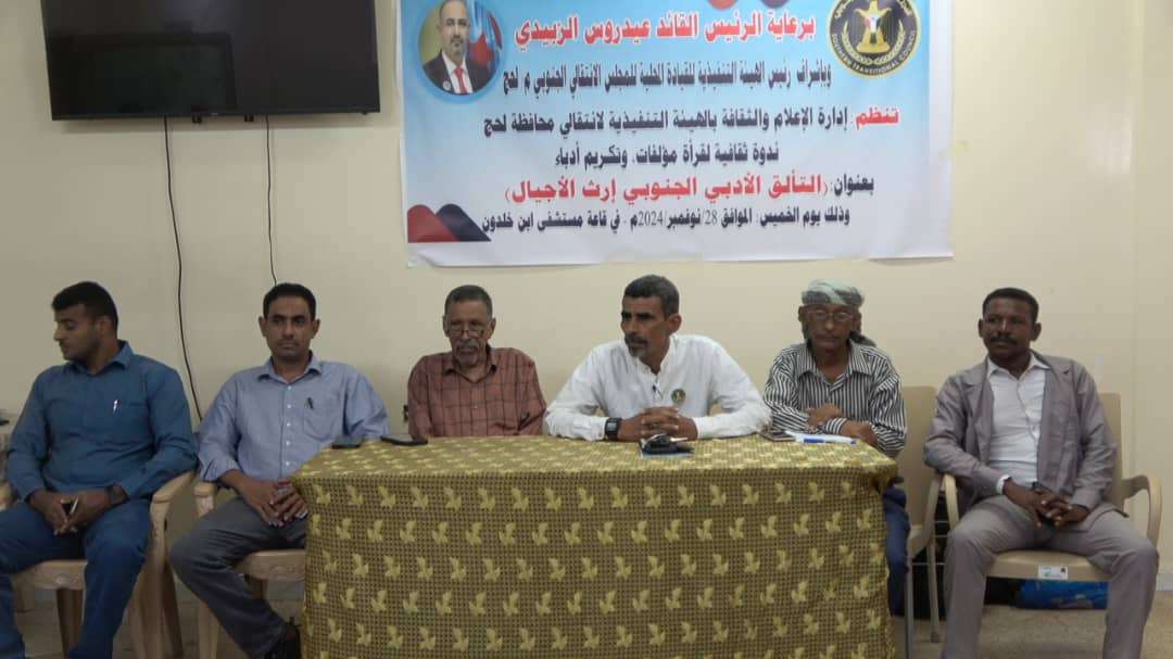 انتقالي لحج ينظم ندوة بعنوان "التأليف الأدبي الجنوبي إرث الأجيال" نظمت الإدارة الإعلامية والثقافية بالهيئة التنفيذية للقيادة المحلية للمجلس الانتقالي الجنوبي في محافظ...
