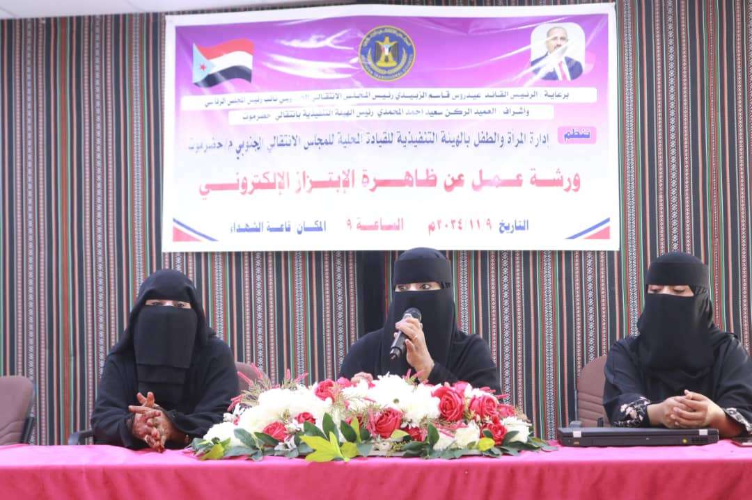 انتقالي حضرموت ينظم ورشة عمل عن ظاهرة الابتزاز الالكتروني بالمكلا نظمت إدارة المرأة والطفل بالهيئة التنفيذية للقيادة المحلية للمجلس الانتقالي الجنوبي بحضرموت، اليوم ا...