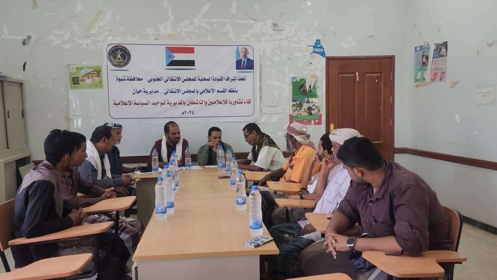 انتقالي حبان يعقد لقاءً تشاورياً للإعلاميين والناشطين في المديرية نظّم القسم الإعلامي بالهيئة التنفيذية للقيادة المحلية للمجلس الانتقالي الجنوبي في مديرية حبان بمحافظ...