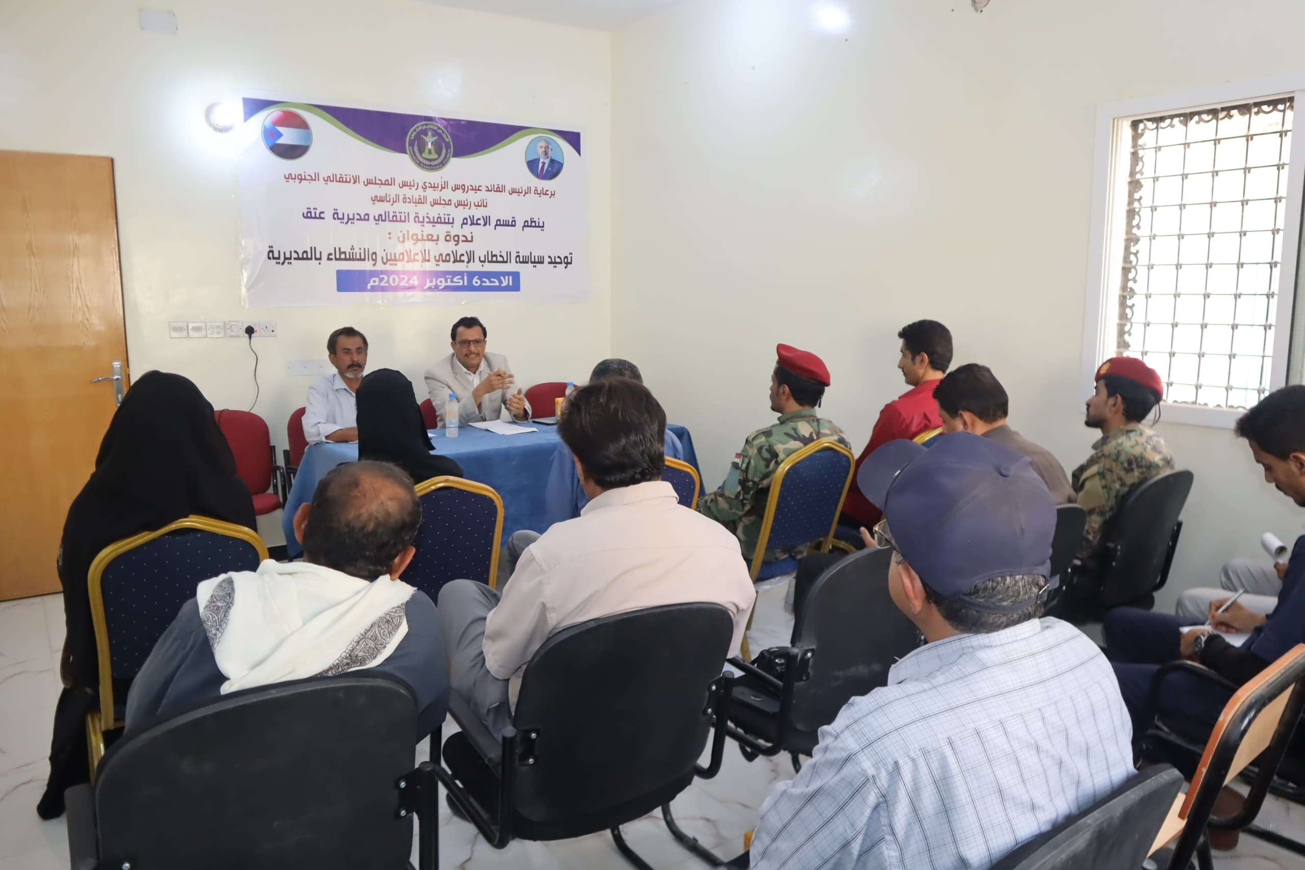 انتقالي عتق ينظم ندوة سياسية حول توحيد الخطاب الإعلامي نظّم القسم الإعلامي بالهيئة التنفيذية للقيادة المحلية للمجلس الانتقالي الجنوبي في مديرية عتق بمحافظة...