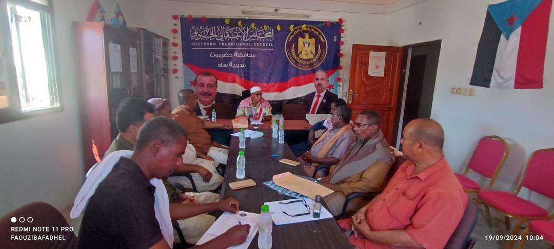 تنفيذية انتقالي ساه تعقد اجتماعها الدوري لشهر سبتمبر عقدت الهيئة التنفيذية للقيادة المحلية للمجلس الانتقالي الجنوبي في مديرية ساه بمحافظة حضرموت، اليوم ا...