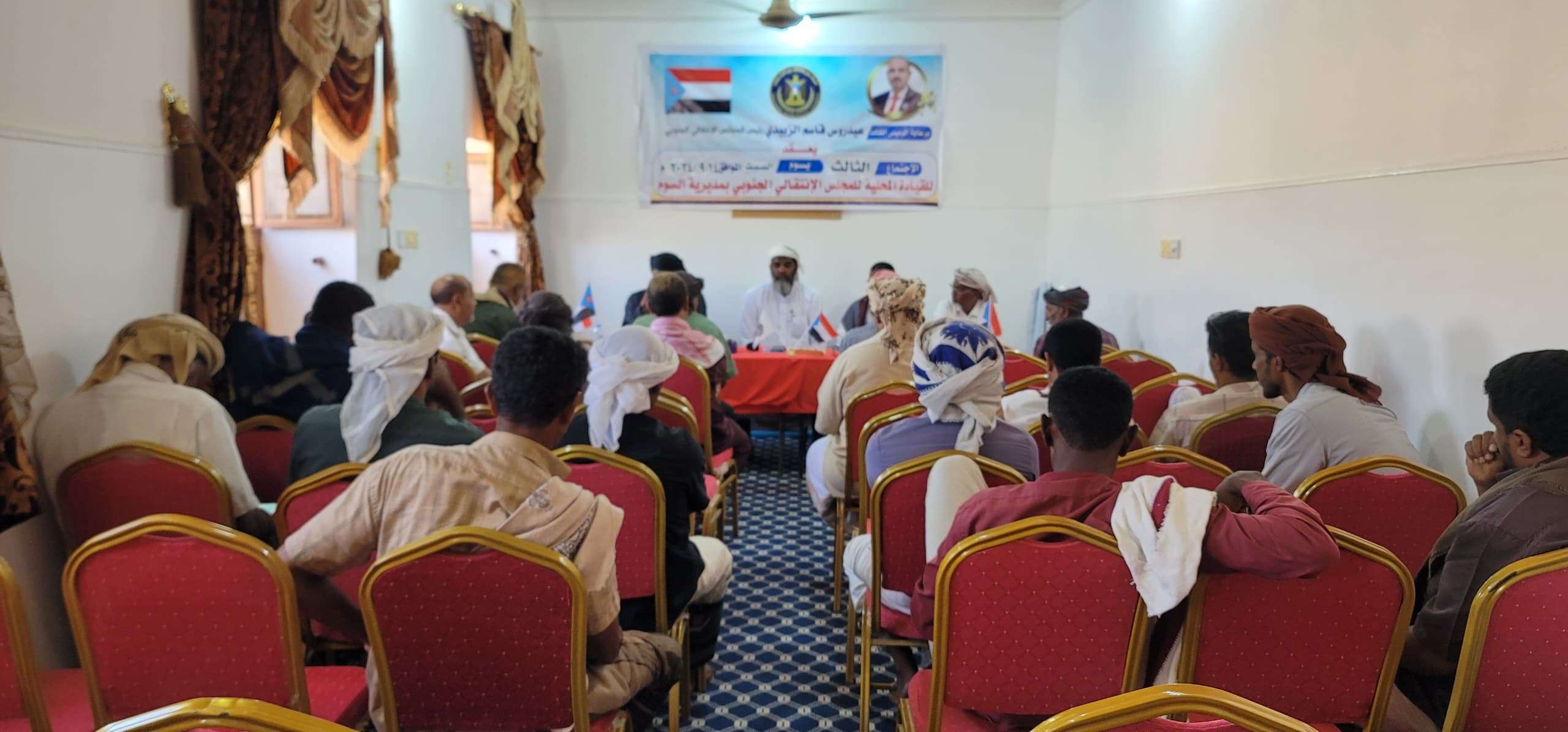 تنفيذية انتقالي الصعيد تعقد اجتماعها الدوري لشهر سبتمبر عقدت الهيئة التنفيذية للقيادة المحلية للمجلس الانتقالي الجنوبي في مديرية الصعيد بمحافظة شبوة، اليوم...