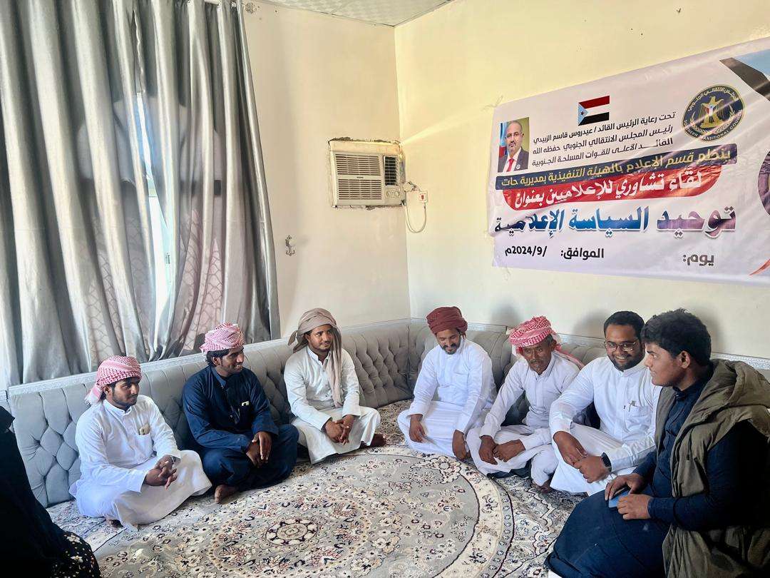 انتقالي حات ينظم ندوة حول توحيد السياسة الإعلامية نظمت الهيئة التنفيذية للقيادة المحلية للمجلس الانتقالي الجنوبي في مديرية حات بمحافظة المهرة، اليوم ا...