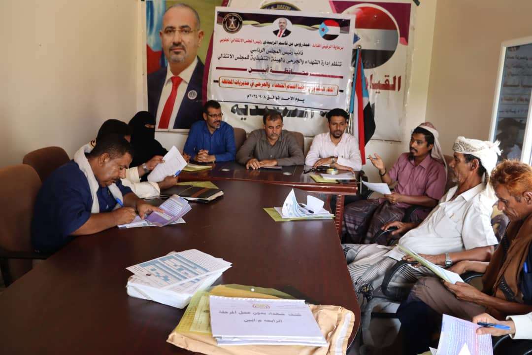 انتقالي أبين يُنظّم ورشة عمل لإعداد قاعدة بيانات الشهداء والجرحى لرؤساء الأقسام بالمديريات نظمت إدارة الشهداء والجرحى بالهيئة التنفيذية للقيادة المحلية للمجلس الانتقالي الجنوبي بمحافظة أبين،...