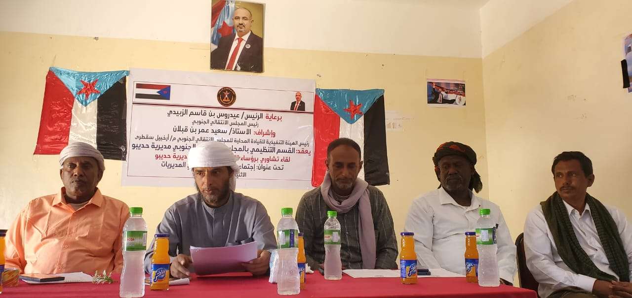 انتقالي حديبو يعقد لقاء تشاورياً مع رؤساء اللجان المحلية بمراكز المديرية عقدت الهيئة التنفيذية للقيادة المحلية للمجلس الانتقالي الجنوبي في مديرية حديبو بمحافظة سقطرى، اليوم...
