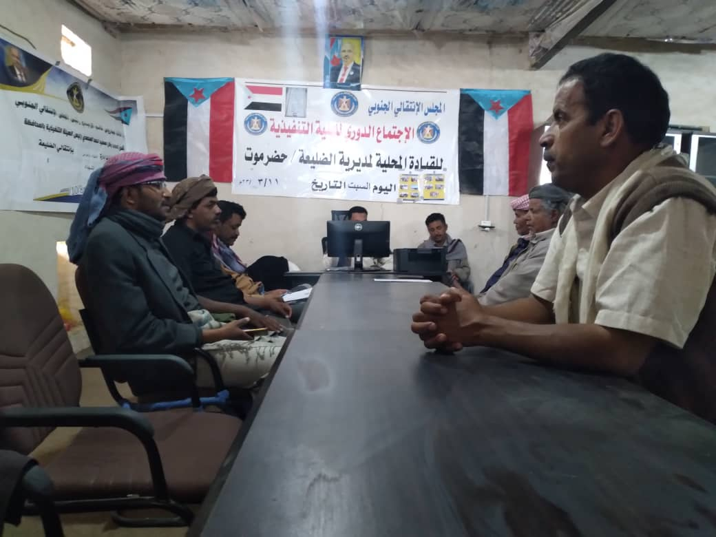 رئيس تنفيذية انتقالي الضالع يلتقي رؤساء اللجان المحلية للمجلس واللجان المجتمعية التقى العميد عبدالله مهدي رئيس الهيئة التنفيذية للمجلس الانتقالي الجنوبي في محافظة الضالع، اليوم الس...