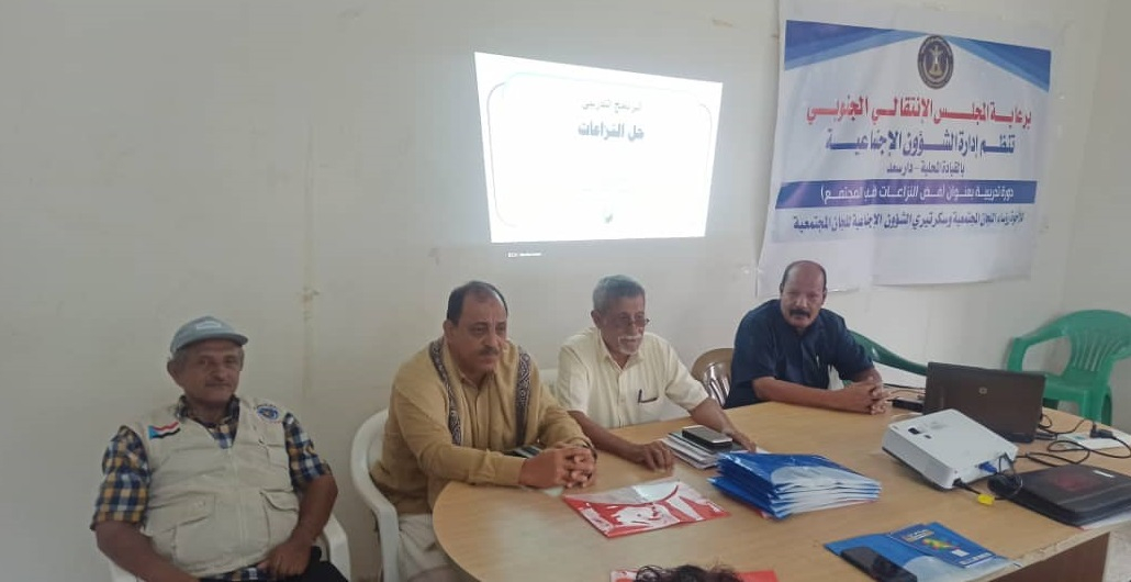 انتقالي دارسعد ينظم دورة تدريبية حول "فض النزاعات في المجتمع" نظمت إدارة الشؤون الاجتماعية في الهيئة التنفيذية للقيادة المحلية للمجلس الانتقالي الجنوبي في مديرية...