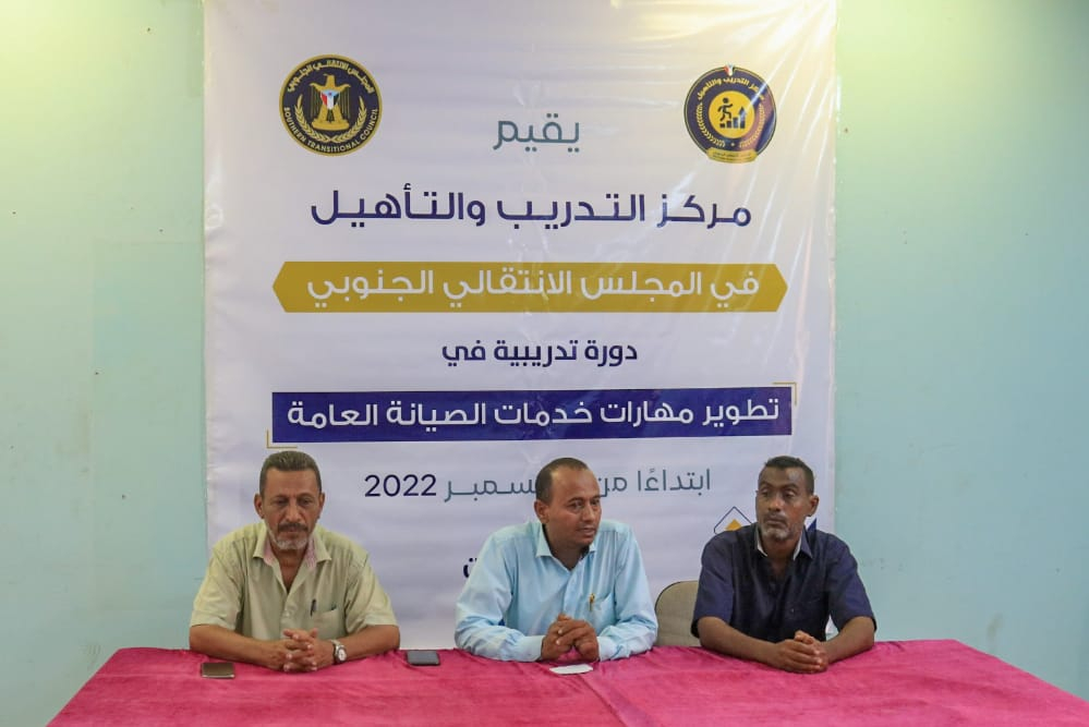 مركز التدريب والتأهيل يدشن دورة تدريبية في "تطوير مهارات خدمات الصيانة العامة" دشن مركز التدريب والتأهيل في المجلس الانتقالي الجنوبي، اليوم الأحد، دورة تدريبية في " تطوير مهارات خ...
