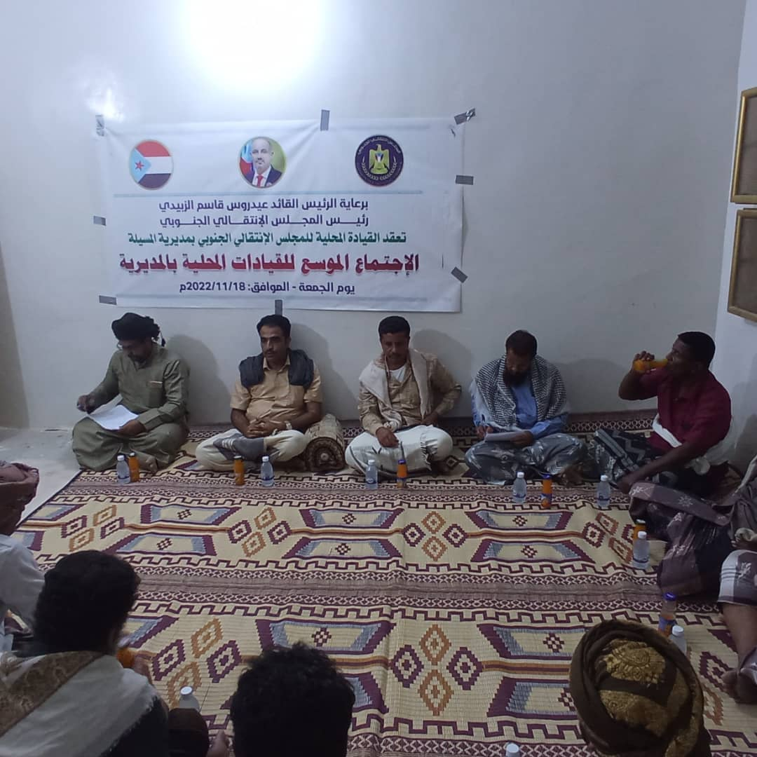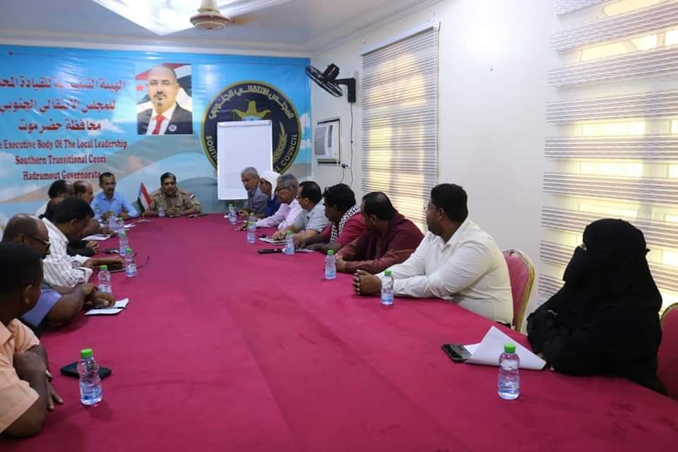 تنفيذية انتقالي بيحان تعقد اجتماعها الدوري لشهر نوفمبر عقدت الهيئة التنفيذية للقيادة المحلية للمجلس الانتقالي الجنوبي في مديرية بيحان بمحافظة شبوة، اليوم ا...