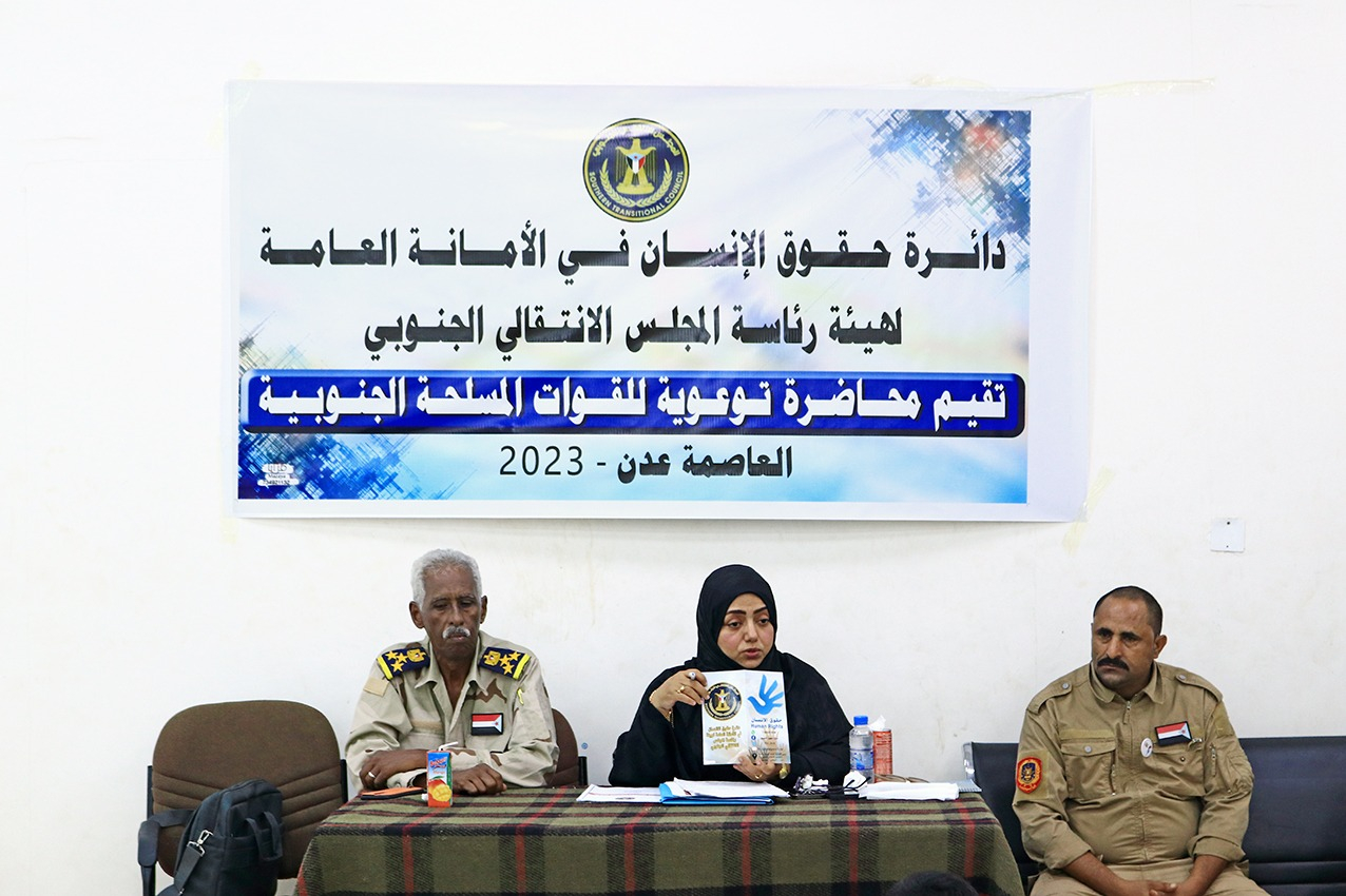 الأمانة العامة تختتم برنامج المحاضرات التوعوية للمستجدين من أفراد الحماية الرئاسية للمجلس الانتقالي اختتمت دائرة حقوق الانسان في الأمانة العامة لهيئة رئاسة المجلس الانتقالي الجنوبي اليوم الخميس، برنام...