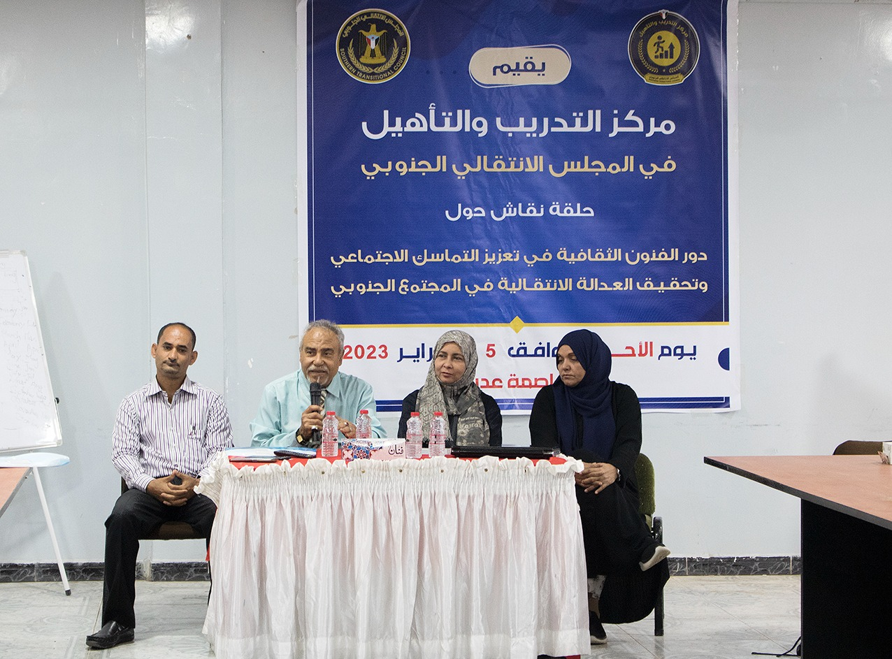 مركز التدريب ينظم حلقة نقاشية حول دور الفنون الثقافية في تعزيز التماسك الاجتماعي وتحقيق العدالة الانتقالية في المجتمع الجنوبي نظم مركز التدريب والتأهيل في المجلس الانتقالي الجنوبي، اليوم الأحد، في العاصمة عدن، حلقة نقاشية بعنو...