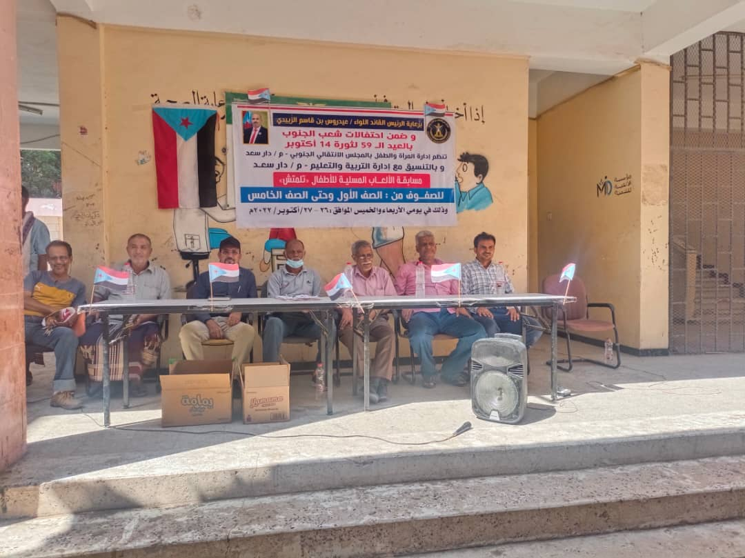 انتقالي دار سعد ينظم مسابقة ألعاب للأطفال بمشاركة عدد من مدارس المديرية نظمت ادارة المرأة والطفل في الهيئة التنفيذية للقيادة المحلية للمجلس الانتقالي الجنوبي في مديرية دار...