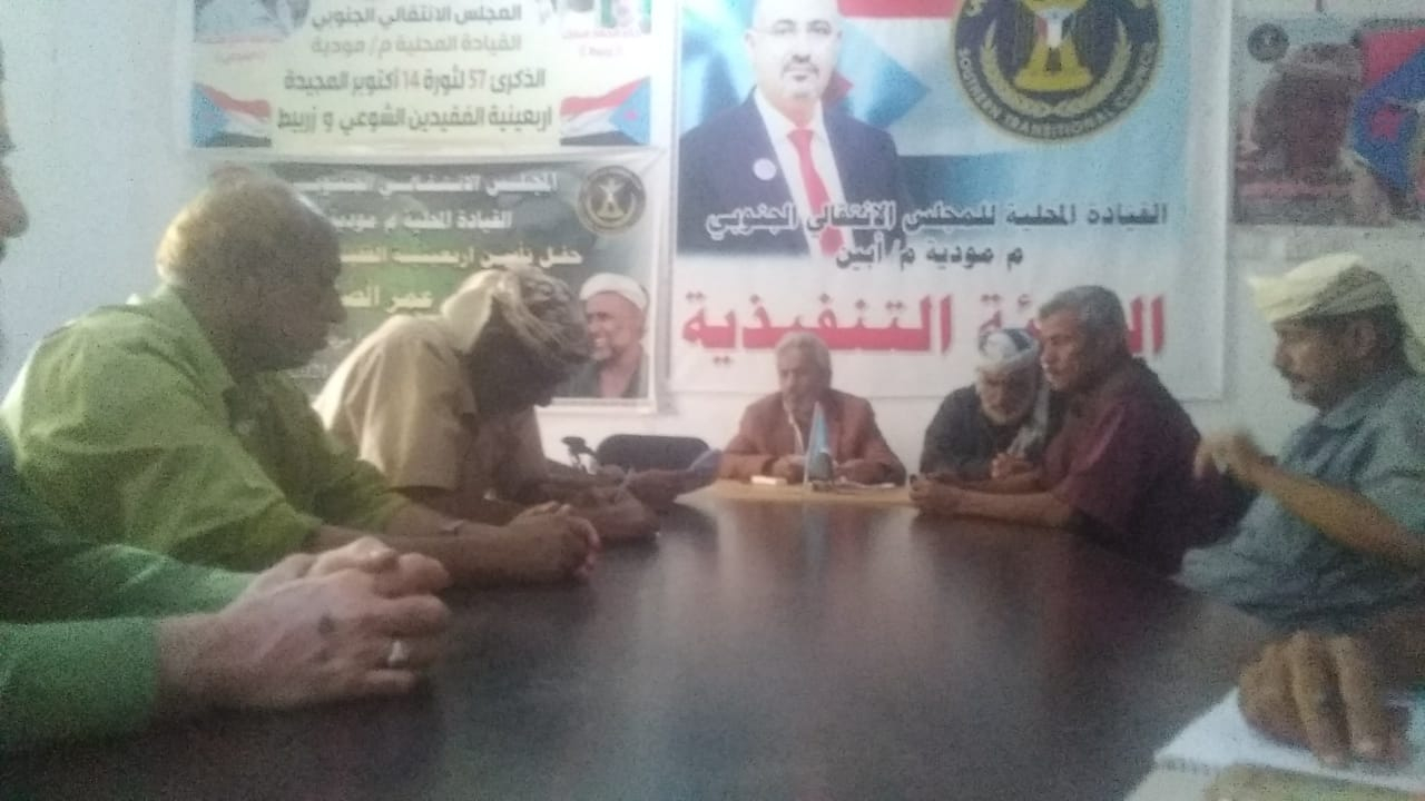 تنفيذية انتقالي مودية تعقد اجتماعها الدوري لشهر ديسمبر عقدت الهيئة التنفيذية للقيادة المحلية للمجلس الانتقالي الجنوبي في مديرية مودية بمحافظة أبين، اليوم ا...