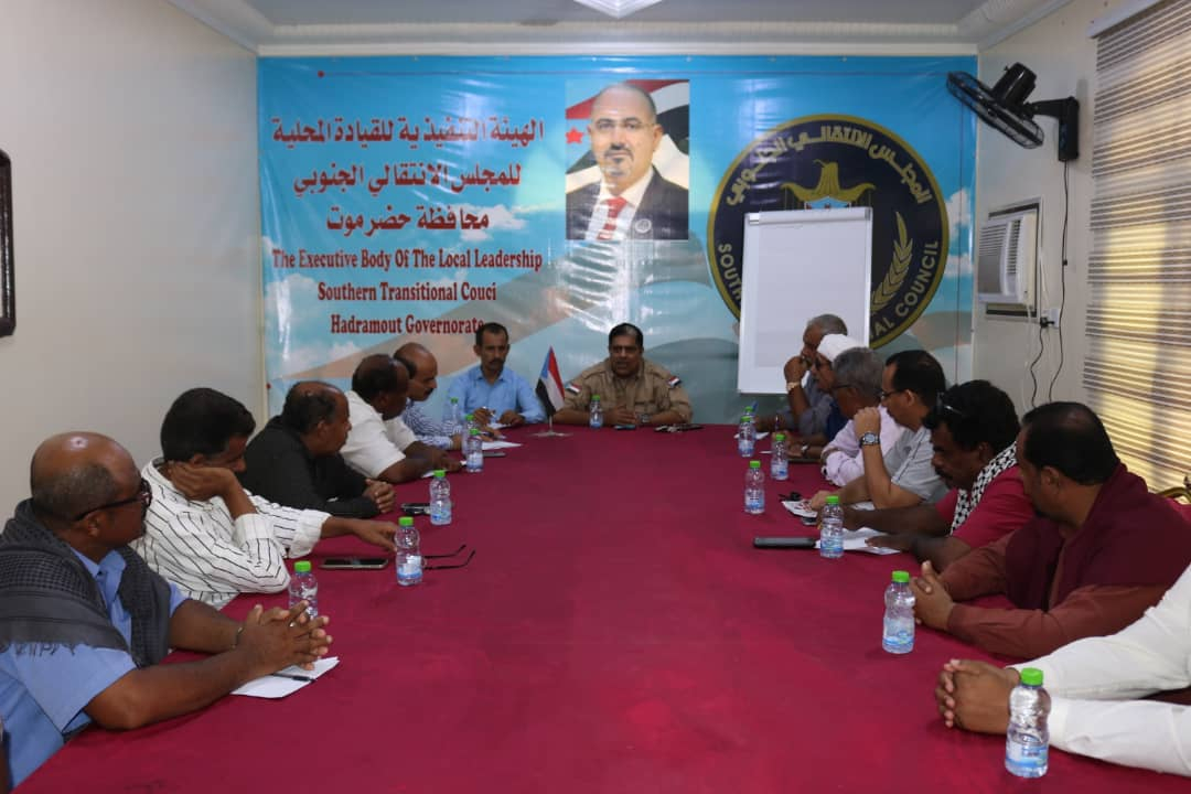 تنفيذية انتقالي حضرموت تعقد اجتماعها الدوري الأول لشهر أكتوبر عقدت الهيئة التنفيذية للقيادة المحلية للمجلس الانتقالي الجنوبي بمحافظة حضرموت، اليوم الثلاثاء، اجتما...