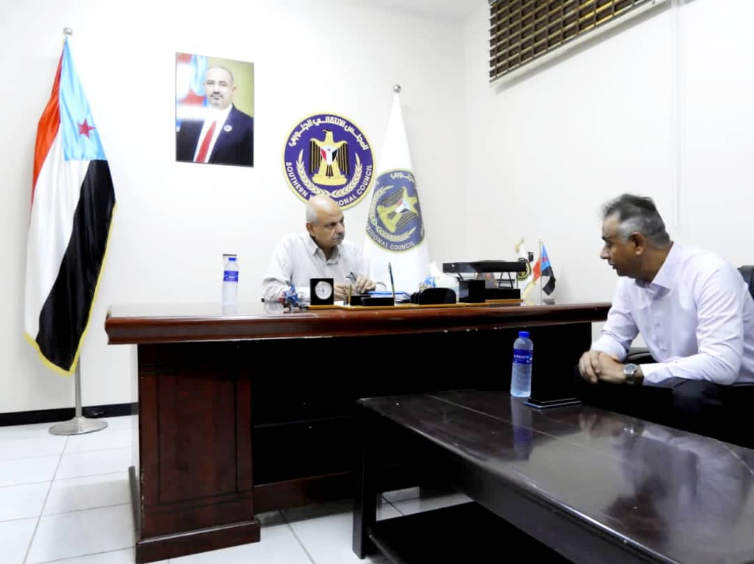 القائم بمهام رئيس تنفيذية انتقالي العاصمة عدن يلتقي مدير عام مديرية المعلا التقى الأستاذ عصام عبده علي، القائم بمهام رئيس الهيئة التنفيذية للقيادة المحلية للمجلس الانتقالي الج...