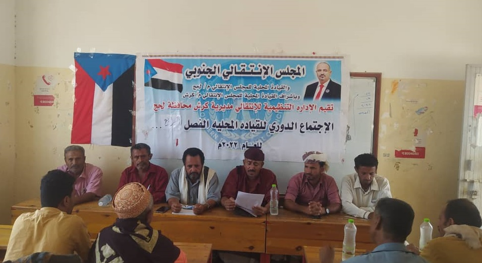 انتقالي كرش يعقد اجتماعه الموسع الرابع للعام الحالي عقدت القيادة المحلية للمجلس الانتقالي الجنوبي في مديرية كرش بمحافظة لحج، اليوم السبت، اجتماعها الموس...
