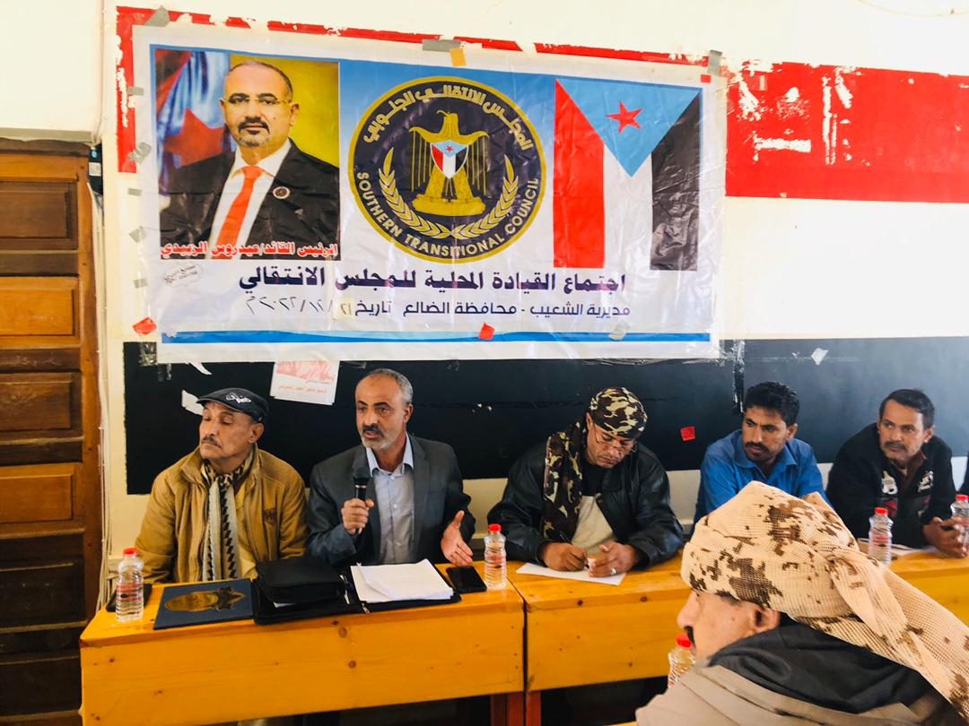 انتقالي الشعيب يعقد اجتماعه الدوري الموسع الرابع للعام الحالي عقدت القيادة المحلية للمجلس الانتقالي الجنوبي في مديرية الشعيب بمحافظة الضالع، اليوم الأربعاء، اجتما...