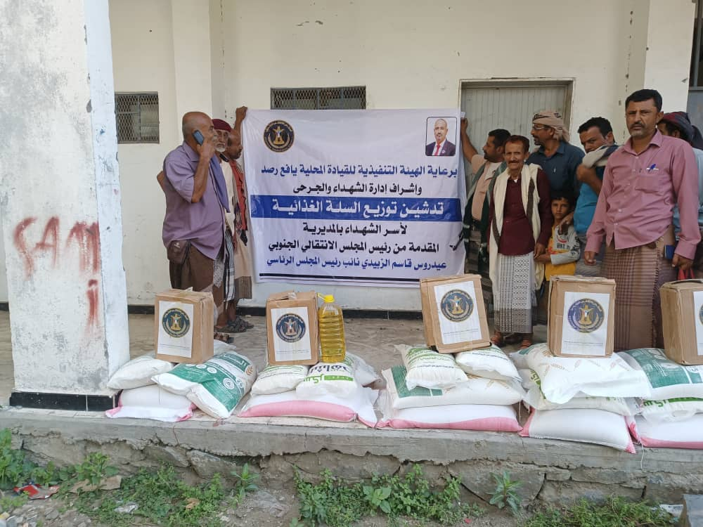 تنفيذية انتقالي يافع رصد تدشن توزيع السلال الغذائية على أسر الشهداء بالمديرية دشن احمد عوض السعدي رئيس الهيئة التنفيذية للقيادة المحلية للمجلس الانتقالي الجنوبي في مديرية ي...