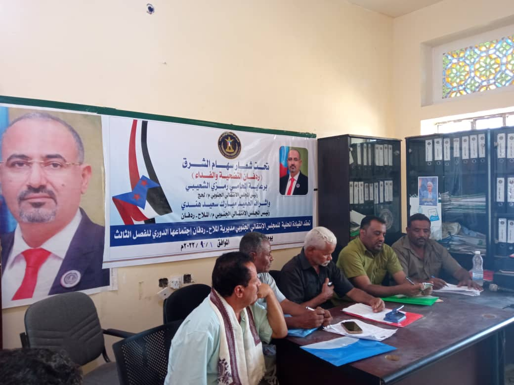 القيادة المحلية لانتقالي الملاح تعقد اجتماعها الفصلي الثالث للعام 2022 عقدت القيادة المحلية للمجلس الانتقالي الجنوبي في مديرية الملاح بمحافظة لحج، اليوم السبت، اجتماعها ال...