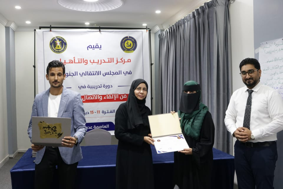 مركز التدريب والتأهيل يختتم الدورة التدريبية التي نظمها في "فن الالقاء والاتصال الفعال" اختتم مركز التدريب والتأهيل في المجلس الانتقالي الجنوبي، اليوم الخميس في العاصمة عدن، الدورة التدريب...