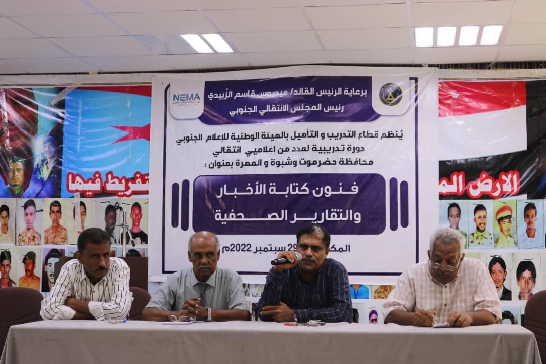 قطاع التدريب والتأهيل يُدشن دورة تدريبية لإعلاميي انتقالي حضرموت وشبوة والمهرة دشن قطاع التدريب والتأهيل بالهيئة الوطنية للإعلام الجنوبي، اليوم الثلاثاء، في مدينة المكلا دور...