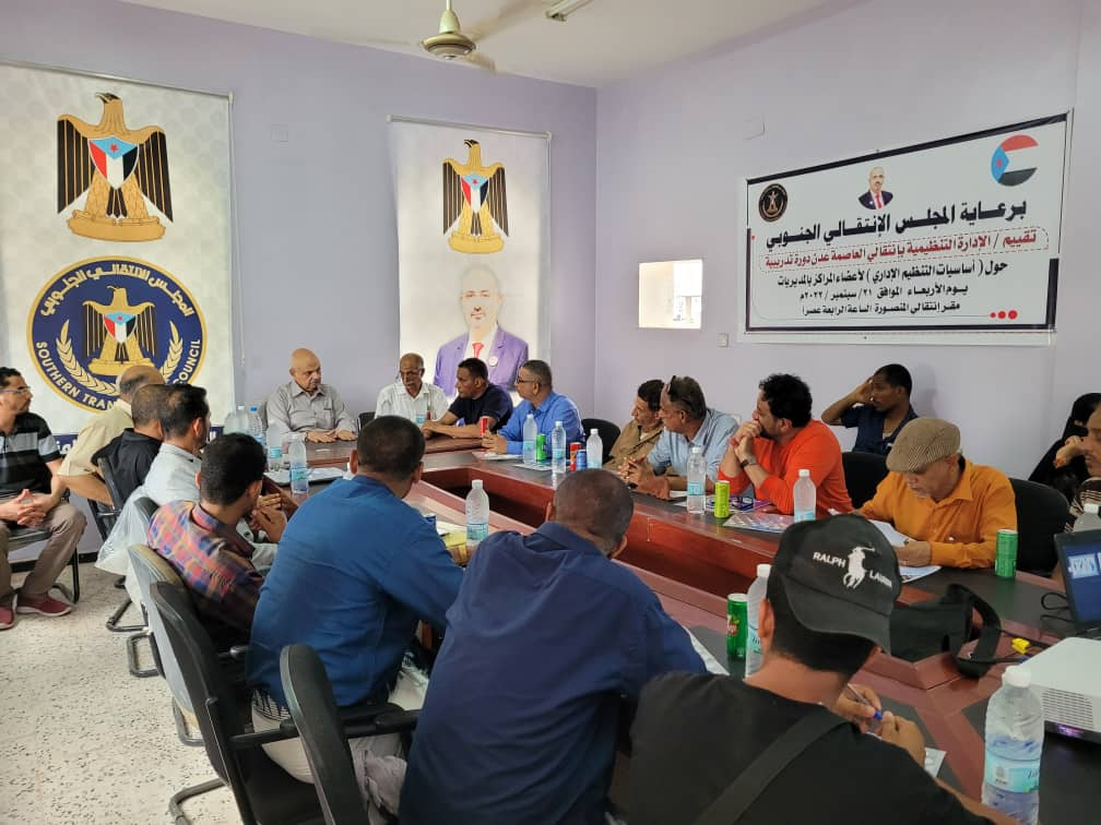 عصام يدشن الدورة التدريبية الخاصة بـ "أساسيات التنظيم الإداري" لأعضاء المراكز بالمديريات دشن الأستاذ عصام عبده علي، القائم بمهام رئيس الهيئة التنفيذية للقيادة المحلية للمجلس الانتقالي الجنو...