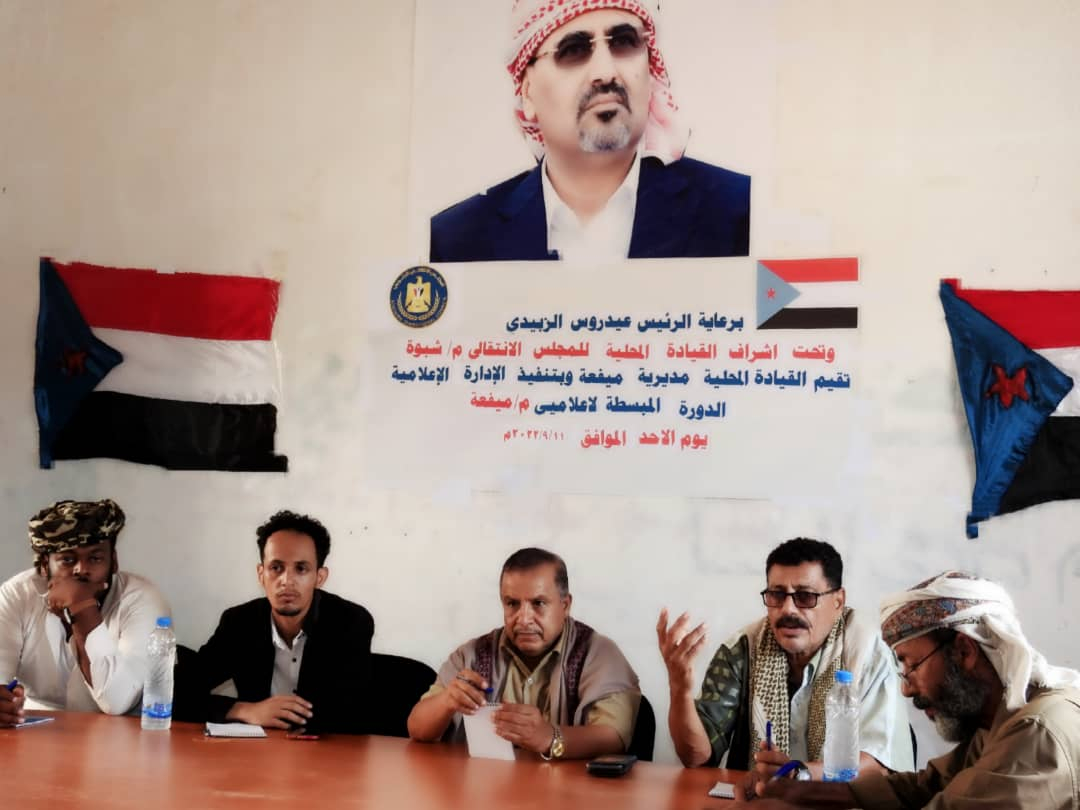 انتقالي ميفعة ينظم دورة تدريبية لعدد من الإعلاميين في المديرية نظمت الإدارة الإعلامية في الهيئة التنفيذية للقيادة المحلية للمجلس الانتقالي الجنوبي في مديرية ميفعة...
