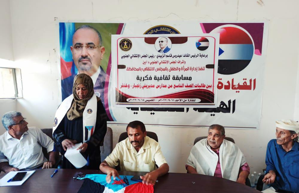 انتقالي أبين ينظم مسابقة ثقافية فكرية لطالبات الصف التاسع بمديرية زنجبار نظمت إدارة المرأة والطفل لانتقالي محافظة أبين، اليوم الأحد، مسابقة ثقافية فكرية لطالبات الصف التاسع...