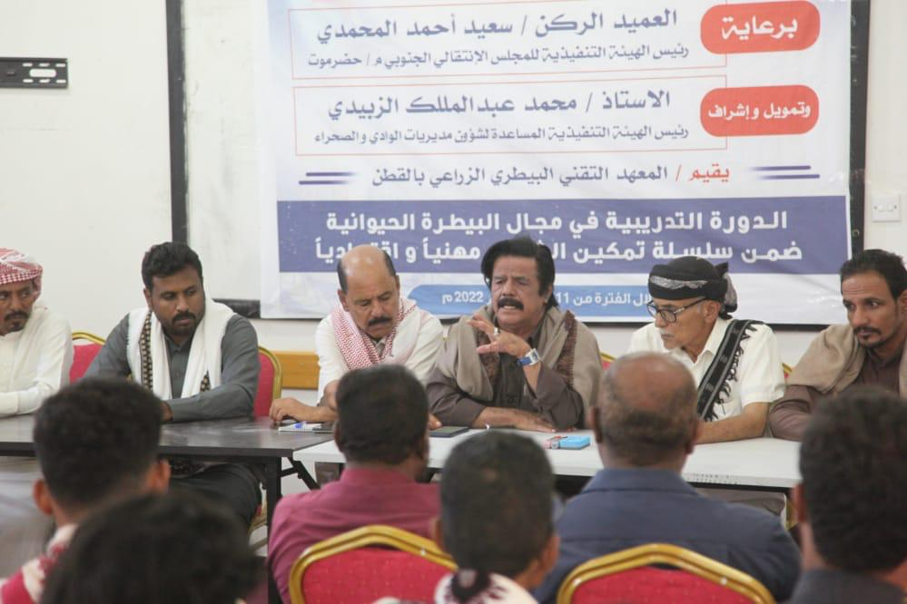 تنفيذية انتقالي وادي حضرموت تدشن دورة تدريبية في البيطرة الحيوانية دشنت الهيئة التنفيذية المساعدة لشؤون مديريات وادي وصحراء حضرموت في مديرية القطن، اليوم الاثنين، دورة...