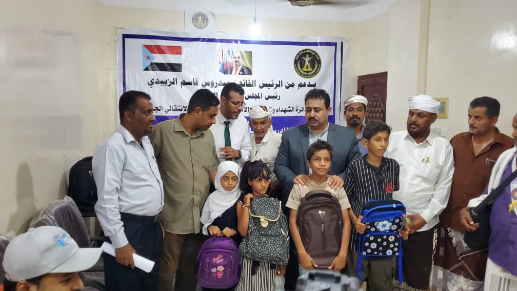 دائرة الشهداء والجرحى تدشن توزيع الحقائب المدرسية على أبناء الشهداء في محافظة لحج دشنت دائرة الشهداء والجرحى في الأمانة العامة لهيئة رئاسة المجلس الانتقالي الجنوبي، اليوم الثلاثاء، ف...