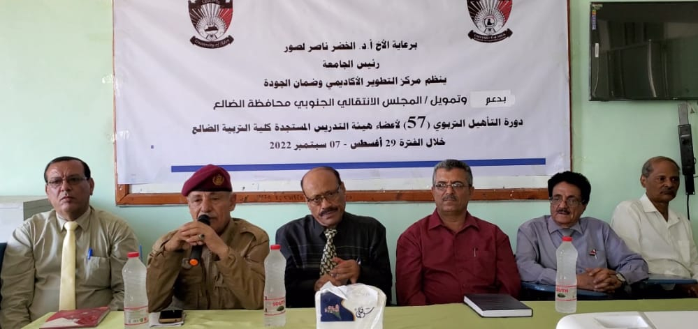 انتقالي الضالع يدشن دورة التأهيل التربوي في كلية التربية بالمحافظة دشن مركز التطوير الأكاديمي وضمان الجودة التابع لجامعة عدن، اليوم الإثنين، دورة التأهيل التربوي في كل...