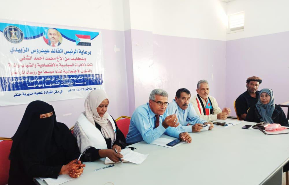 تنفيذية انتقالي أبين تواصل لقاءاتها الموسعة برؤساء المراكز بمديرية خنفر التقت الهيئة التنفيذية لانتقالي أبين، اليوم الثلاثاء، ورؤساء اللجان المحلية في المجلس الانتقال...