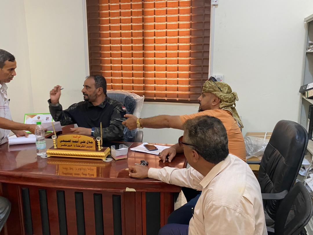 رئيس تنفيذية انتقالي خورمكسر يطّلع من مدير قسم شرطة المديرية على الحالة الأمنية وأحوال المحتجزين ناقش الاستاذ بسام امعبد رئيس الهيئة التنفيذية للقيادة المحلية للمجلس الانتقالي الحنوبي في خورمكسر با...