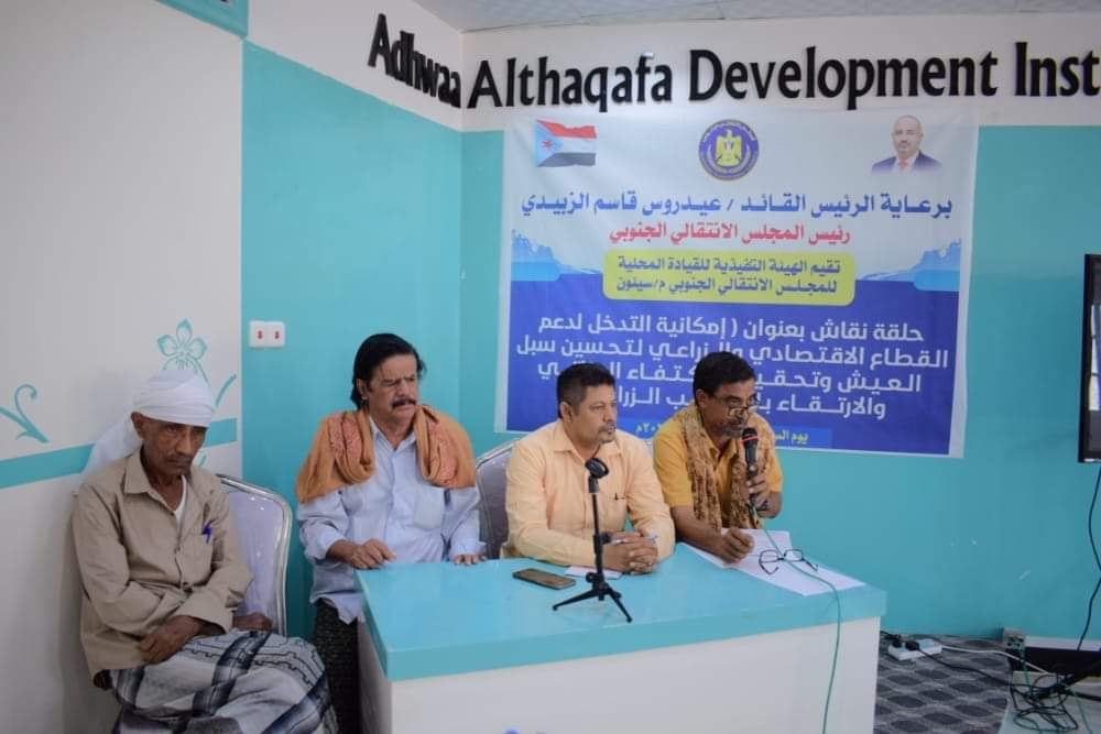 انتقالي سيئون ينظم حلقة نقاش حول إمكانية التدخل لدعم القطاع الاقتصادي والزراعي وتحسين سُبل العيش نظمت الهيئة التنفيذية للقيادة المحلية للمجلس الانتقالي الجنوبي بمديرية سيئون اليوم السبت حلقة...