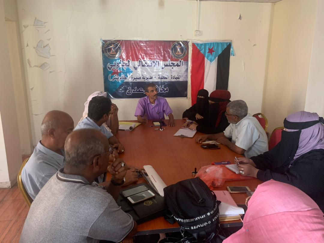 تنفيذية انتقالي صيرة تعقد اجتماعها الدوري لشهر نوفمبر عقدت الهيئة التنفيذية للقيادة المحلية للمجلس الانتقالي الجنوبي في صيرة بالعاصمة عدن، اجتماعها الدو...