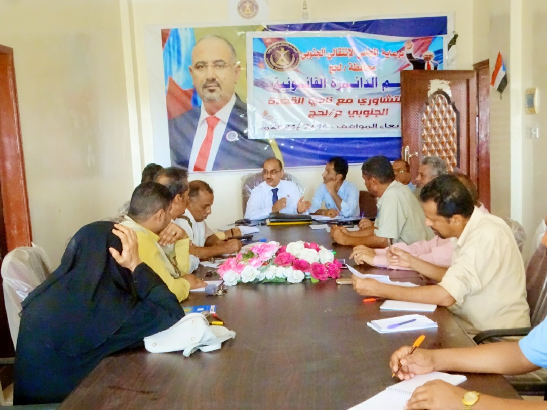 الإدارة القانونية بتنفيذية انتقالي لحج تعقد لقاءً تشاورياً للتحضير لإشهار اتحاد الحقوقيين الجنوبيين بالمحافظة عقدت الإدارة القانونية بالهيئة التنفيذية للقيادة المحلية للمجلس الانتقالي الجنوبي بمحافظة لحج، الي...