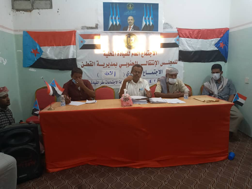 قيادة انتقالي حضرموت تعقد لقاءً تشاورياً مع رؤساء اللجان المحلية بمراكز مديرية القطن عقدت القيادة المحلية للمجلس الانتقالي الجنوبي بمحافظة حضرموت، ممثلة بالشيخ صالح سالم العمودي نائب رئ...