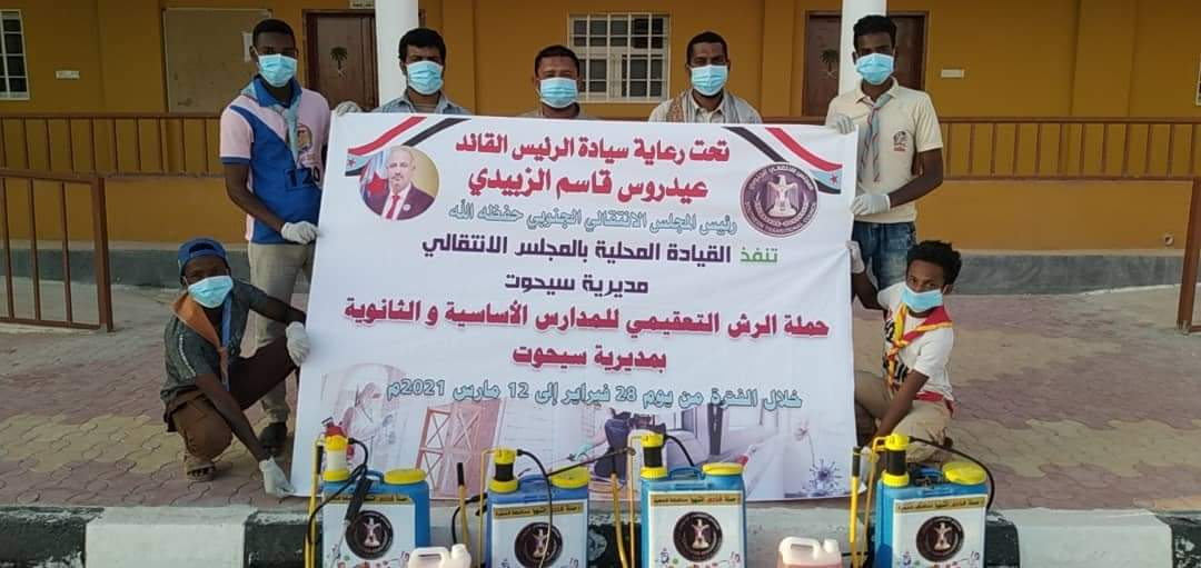 انتقالي سيحوت يدشن حملة الرش التعقيمي للمدارس الأساسية والثانوية بالمديرية دشنت القيادة المحلية للمجلس الانتقالي الجنوبي بمديرية سيحوت بمحافظة المهرة، مساء الأحد، حملة الرش ال...