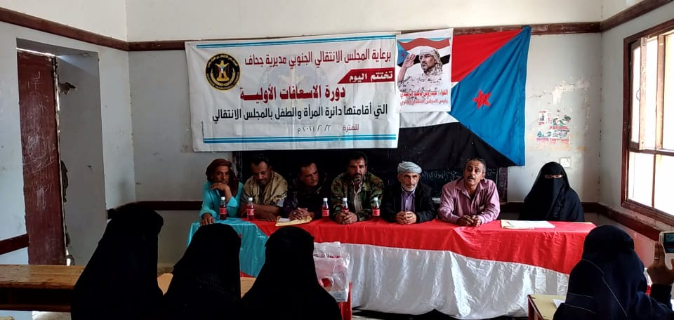 إدارة المرأة والطفل بتنفيذية انتقالي جحاف تختتم الدورة التدريبية في مجال الاسعافات الأولية بمنطقة ظمر نظمت إدارة المرأة والطفل في الهيئة التنفيذية للقيادة المحلية للمجلس الانتقالي الجنوبي بمديرية جحاف ب...