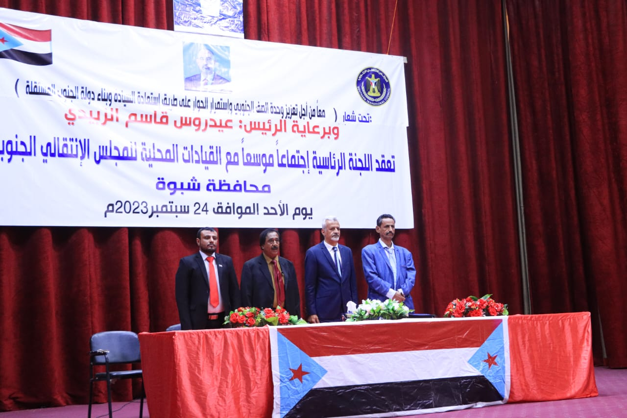 فريق من هيئة الرئاسة يعقد اجتماعاً مع اعضاء الجمعية الوطنية من محافظة شبوة عقد فريق من هيئة الرئاسية للمجلس الانتقالي الجنوبي، اليوم الأحد، اجتماعا مع اعضاء الجمعية الوطنية لل...
