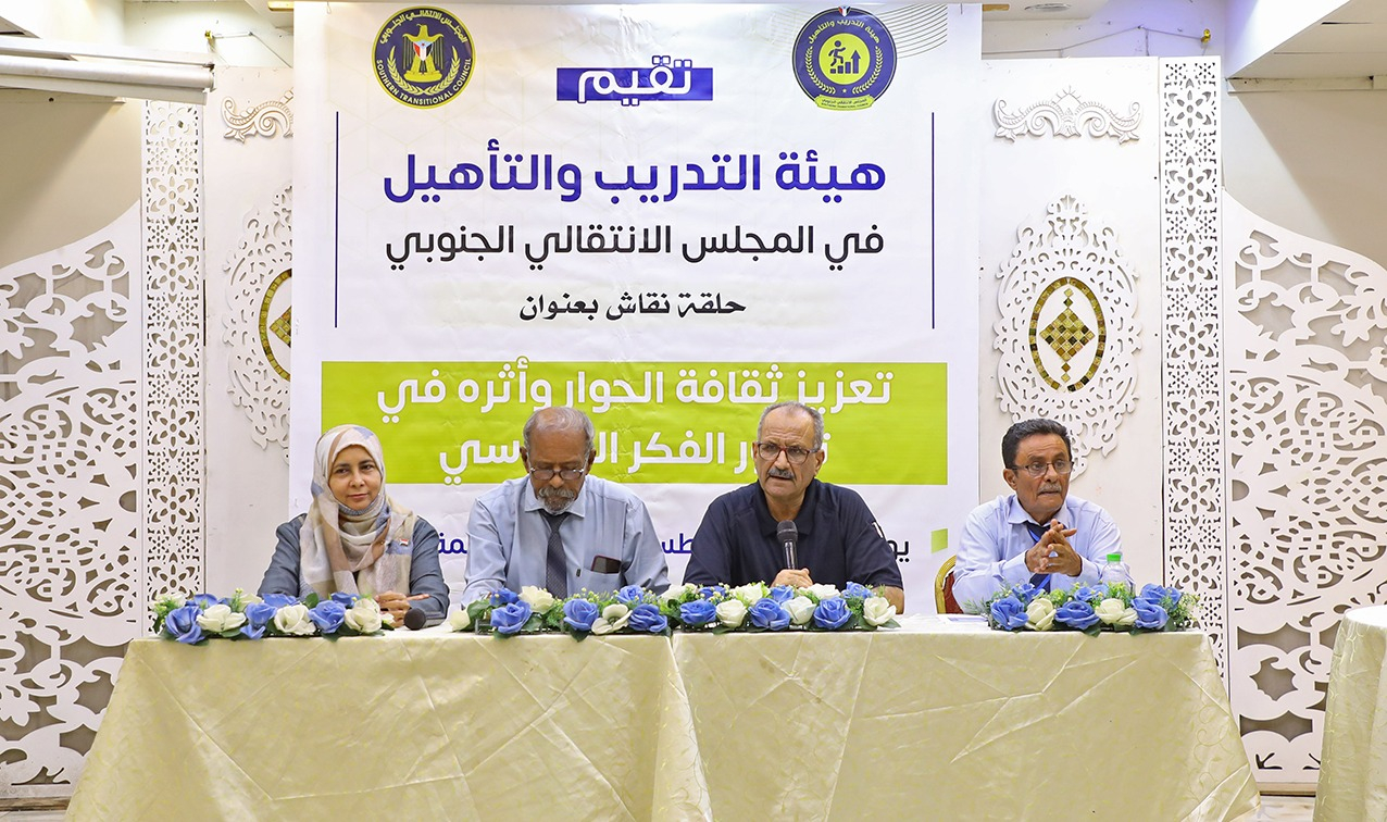 هيئة التدريب والتأهيل تنظم حلقة نقاشية حول تعزيز ثقافة الحوار نظمت هيئة التدريب والتأهيل في المجلس الانتقالي الجنوبي، اليوم الأحد، حلقه نقاشية حول تعزيز ثقافة الح...