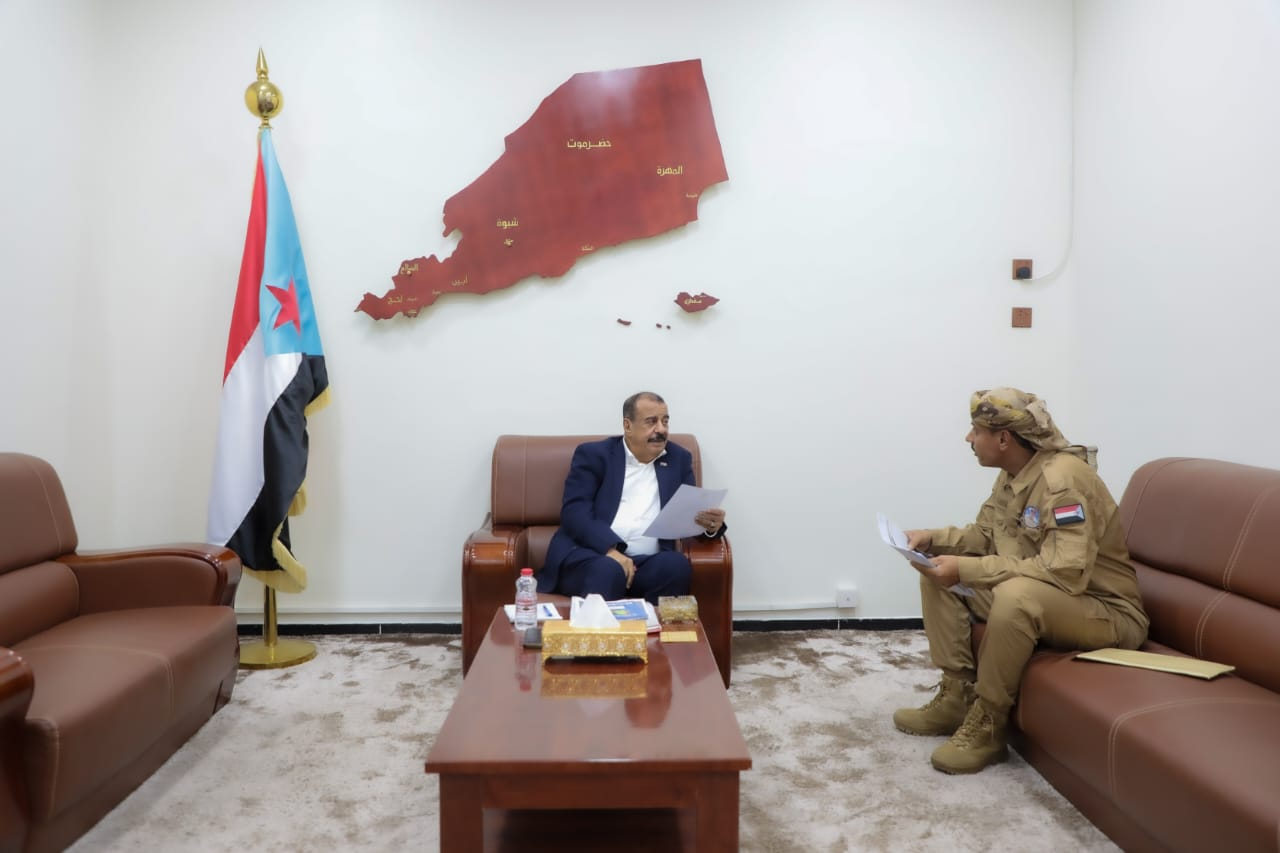 اللواء بن بريك يطلع على دور إدارة مكافحة التهريب في الوادي والصحراء التقى اللواء الركن أحمد سعيد بن بريك، نائب رئيس المجلس الانتقالي الجنوبي، رئيس الجمعية الوطنية، اليو...
