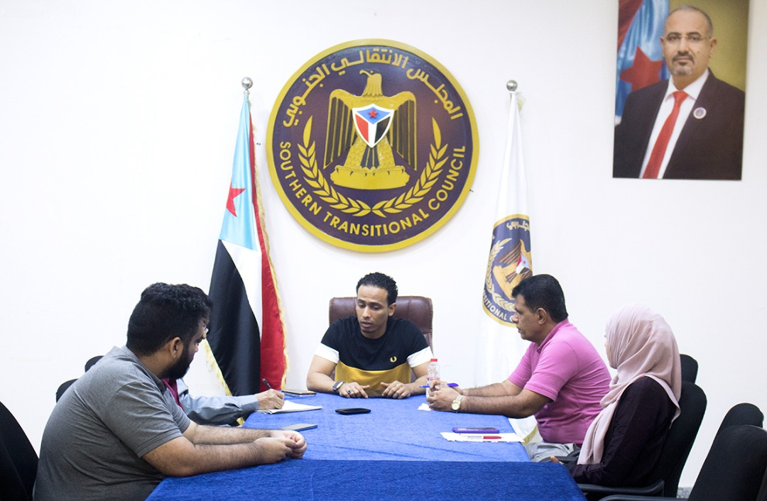 رئيس دائرة الشباب والطلاب يلتقي قيادة اتحاد الإعلام الرياضي بالعاصمة عدن التقى مؤمن حسن السقاف مستشار رئيس المجلس الانتقالي الجنوبي لشؤون الشباب رئيس دائرة الشباب والط...
