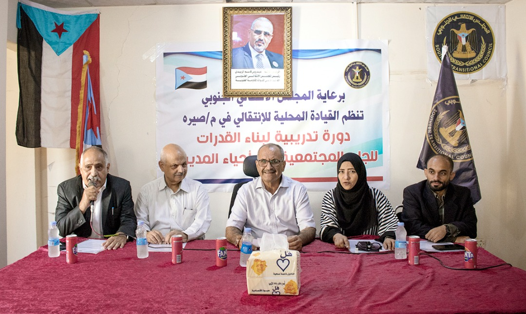 الجعدي يدشن دورة تدريبية للجان المجتمعية بمديرية صيرة حول "بناء القدرات في العمل التنظيمي وإدارة الأزمات" دشن الأستاذ فضل محمد الجعدي نائب الامين العام للأمانة العامة لهيئة رئاسة المجلس الانتقالي الجنوبي، ا...