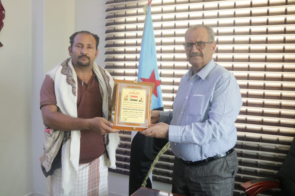 نائب الأمين العام يتسلم درعا تكريميا لهيئة رئاسة المجلس من اللجنة المنظمة لدوري الشهيد أبو اليمامة تسّلم الأستاذ فضل محمد الجعدي نائب الأمين العام للأمانة العامة لهيئة رئاسة المجلس الانتقالي الجنوبي،...