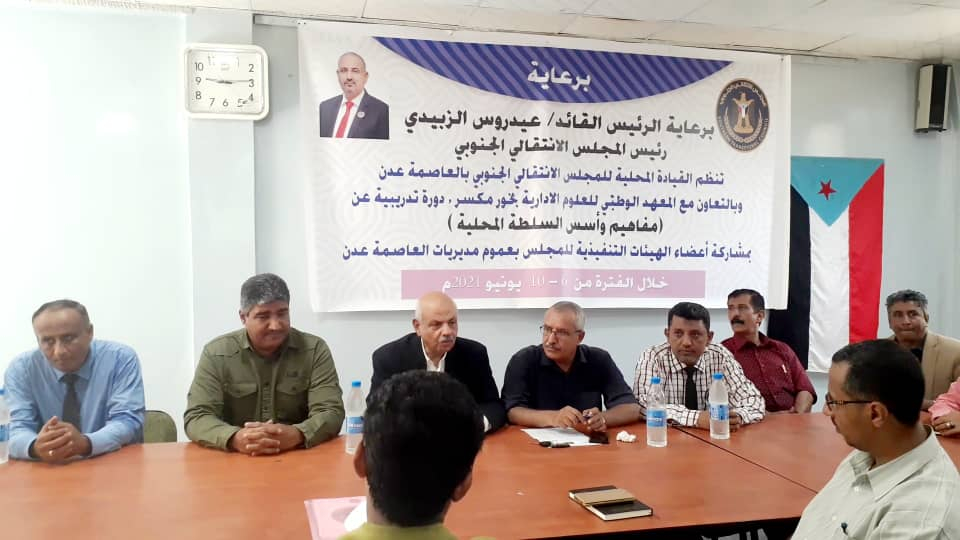 هيثم يدشن الدورة التدريبية لتنفيذيات مديريات العاصمة عدن حول "مفاهيم وأسس السلطة المحلية" دشن المهندس نزار ناصر هيثم عضو هيئة رئاسة المجلس الانتقالي الجنوبي، رئيس الهيئة التنفيذية للقيادة ال...