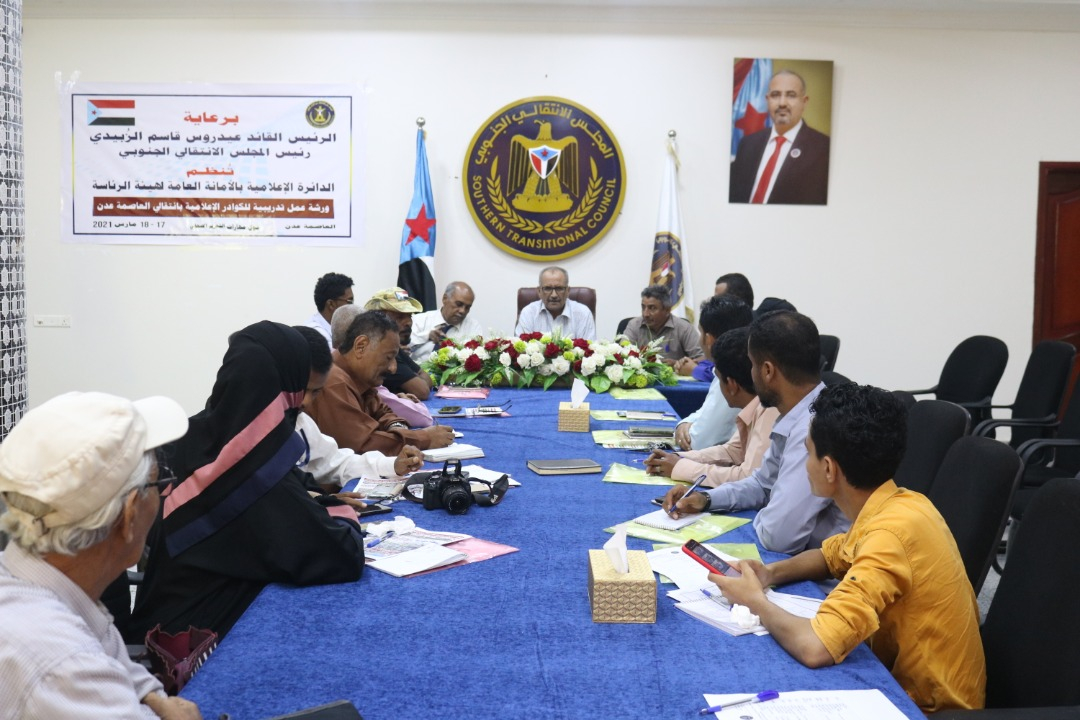 الدائرة الإعلامية تختتم الورشة التدريبية في "مهارات التحرير الصحفي" للكوادر الإعلامية بانتقالي العاصمة عدن اختتمت الدائرة الإعلامية في الأمانة العامة لهيئة رئاسة المجلس الانتقالي الجنوبي، اليوم الخميس، ورشة...